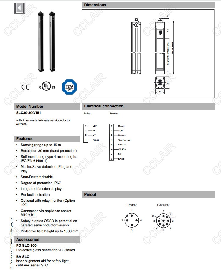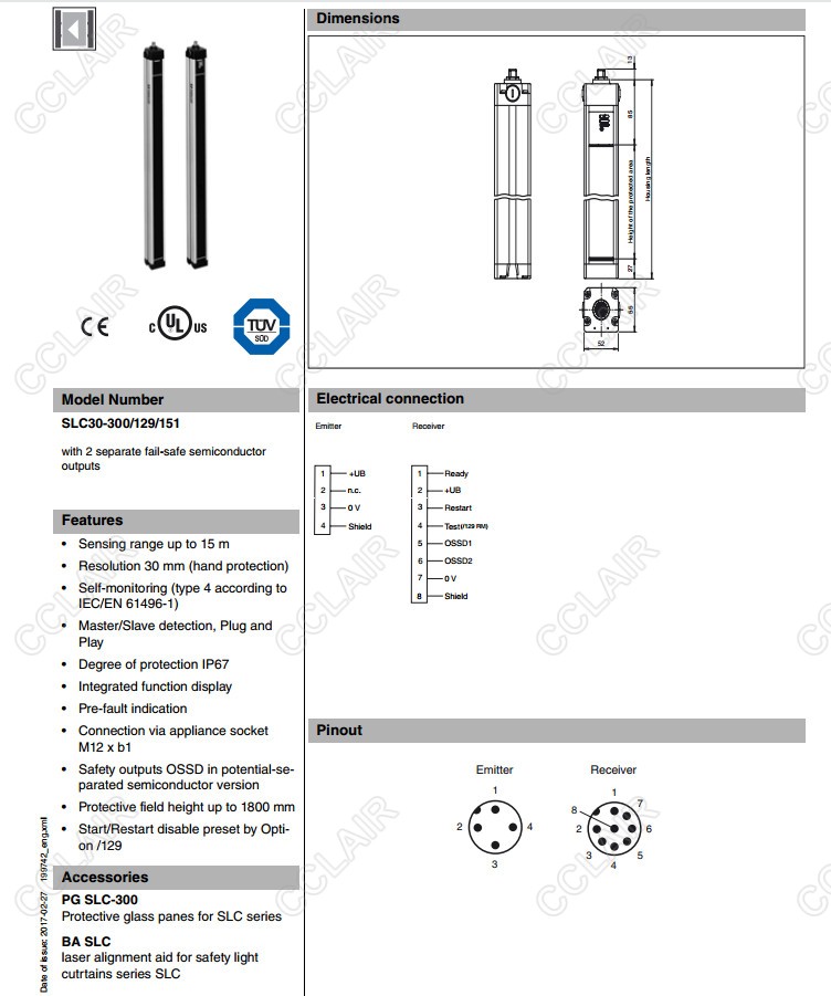 SLC30-300/129/151,SLC30-300/151,SLC30-450/129,SLC30-450/129/151,SLC30-450/151,安全光柵