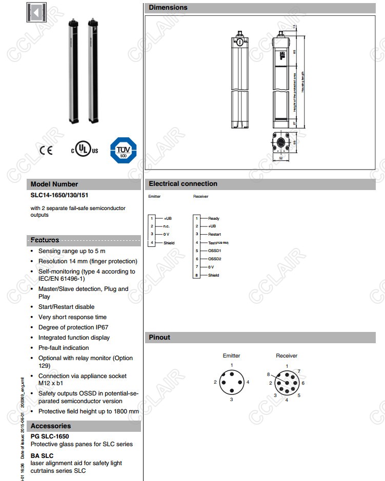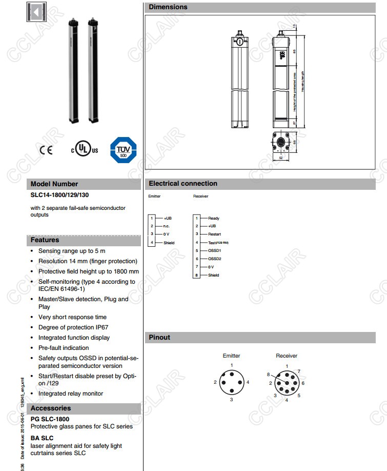 SLC14-1650/130/151,SLC14-1800/129/130,SLC14-1800/129/130/151,安全光柵