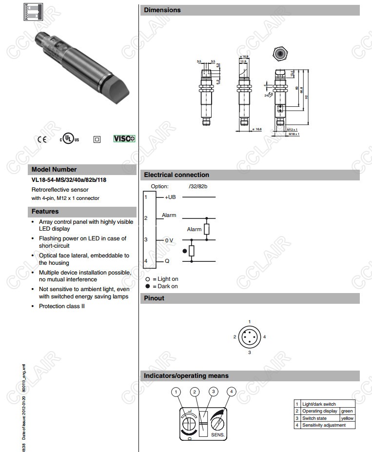 VL18-54-MS/32/40a/82b/118,反射板型傳感器