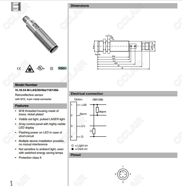 VL18-54-M-LAS/30/40a/118/126b,反射板型傳感器