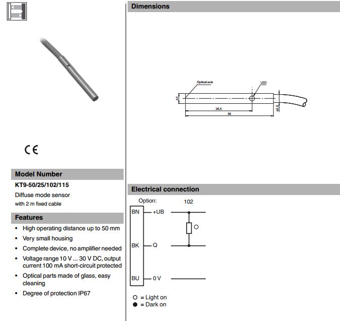 KT9-50/25/102/115,漫反射型傳感器