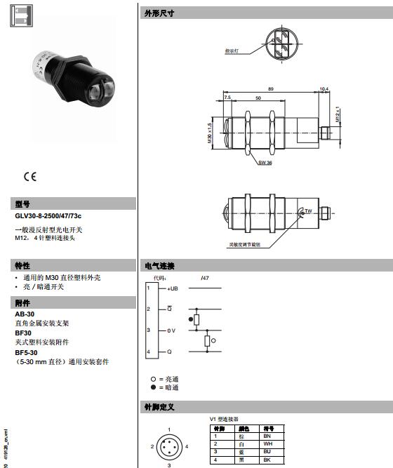 GLV30-8-2500/47/73c,漫反射型傳感器