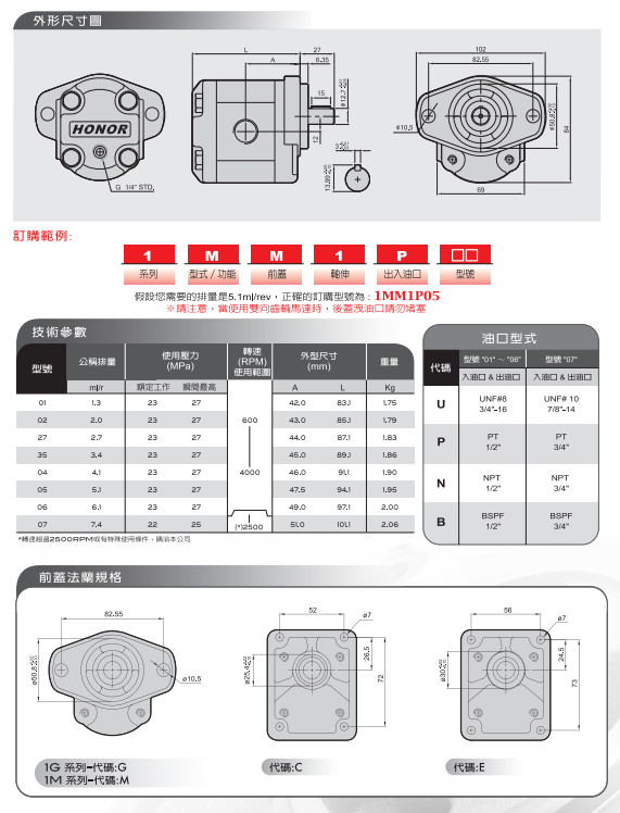 1MM1P04,1MM1P05,1MM1P06,1MM1P07,HONOR雙向齒輪馬達(dá)