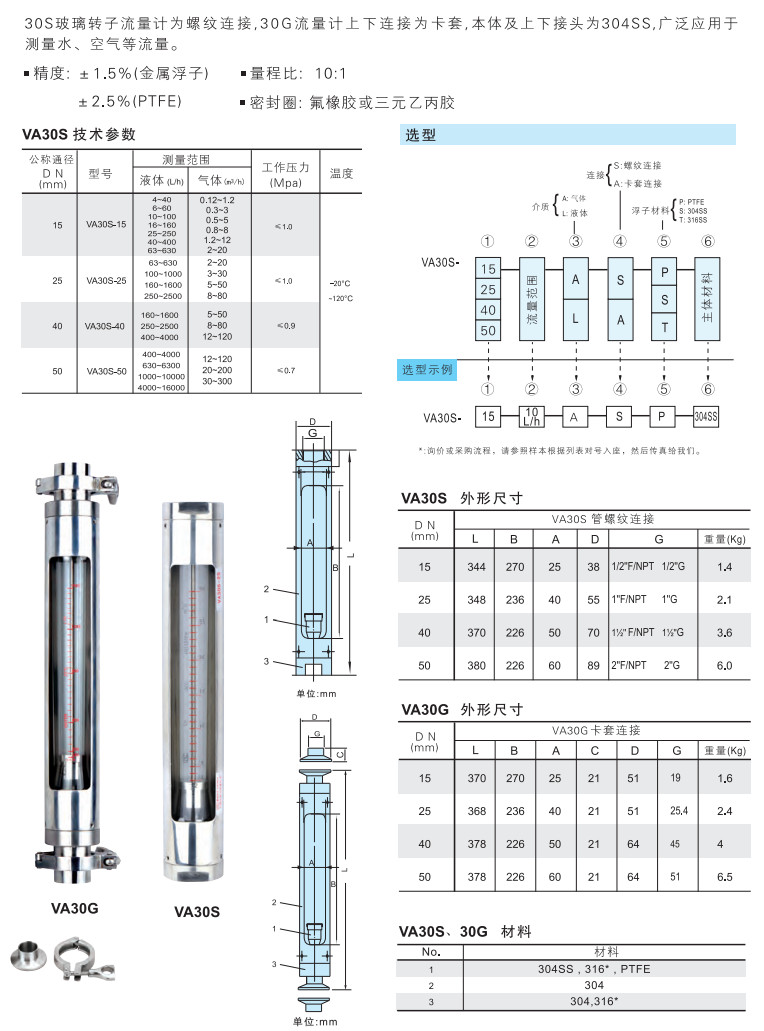 VA30S-15,VA30S-25,VA30S-40,VA30S-50,螺紋連接玻璃轉(zhuǎn)子