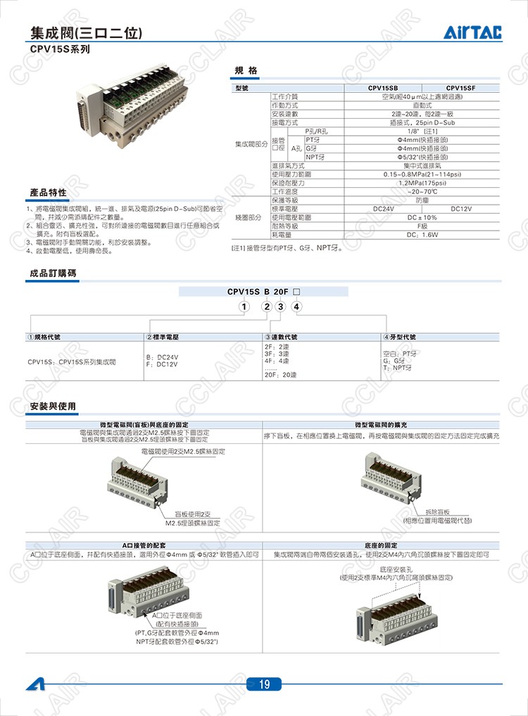 CPV15SB2F,CPV15SB2FG,CPV15SB2FT,CPV15SF11F,CPV15SF11FG,CPV15SF11FT,AIRTAC集成閥
