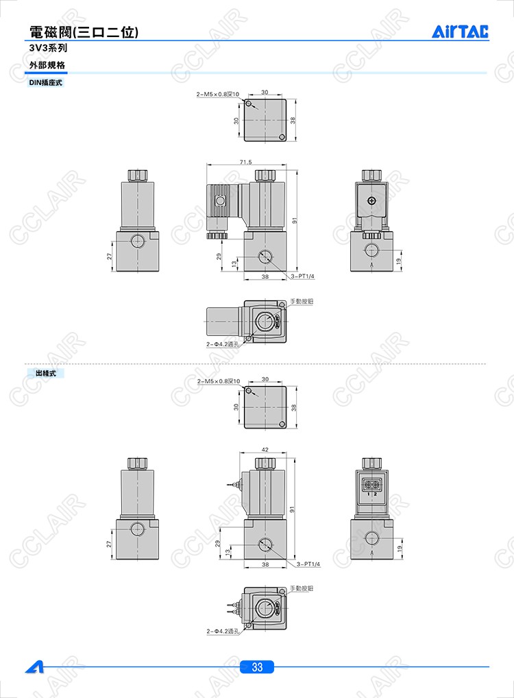 AIRTAC亞德客 電磁閥3V308NC,3V308NO