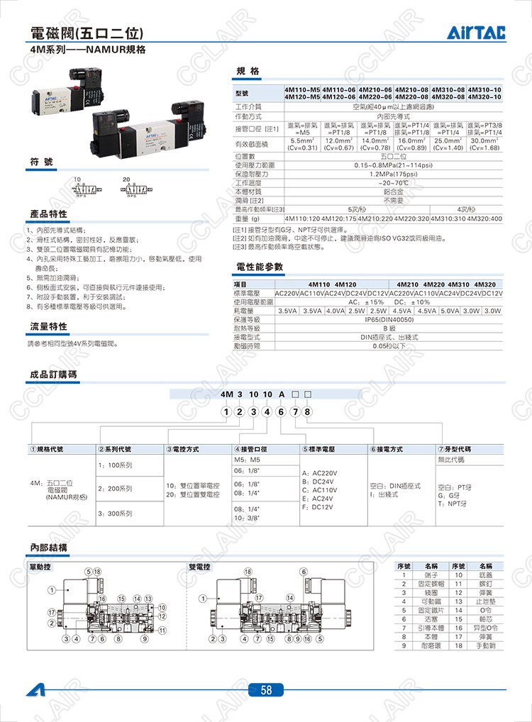 4M110-M5,4M120-M5,4M110-06,4M120-06,4M210-06,4M220-06,4M210-08,AIRTAC電磁閥