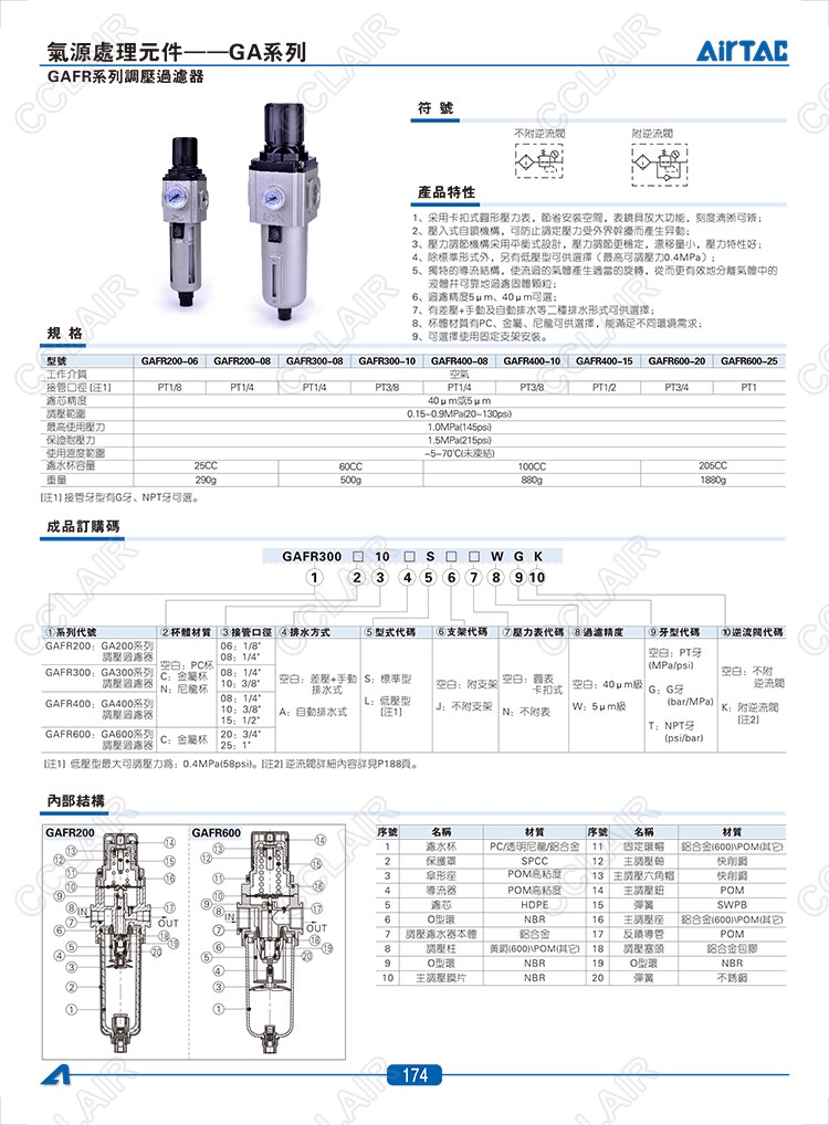 GAFR200-06,GAFR200-08,GAFR300-08,GAFR300-10,GAFR400-08,AIRTAC調(diào)壓過濾器