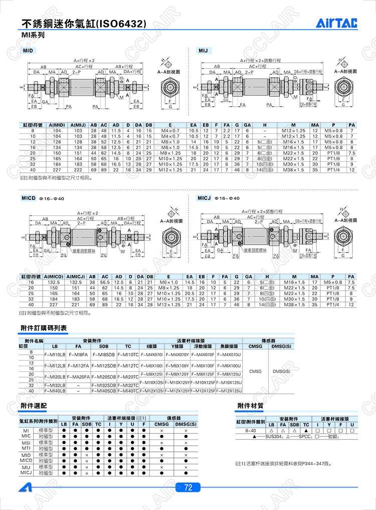 MI8*10CA,MIC16*10CA,MSI8*10CA,MTI10*10CA,MID8*10,MIJ8*10,MICD16*10,AIRTAC臺灣不銹鋼迷你氣缸