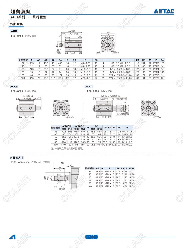 ACQ32*125,ACQ32*125-S,ACQD32*125,ACQD32*125-S,ACQJ32*125,ACQJ32*125-S,AIRTAC亞德客長(zhǎng)行程超薄氣缸