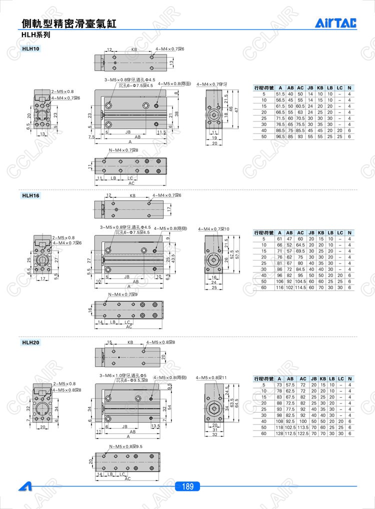 HLH6*5-S,HLH6*10-S,HLH6*15-S,HLH6*20-S,HLH6*25-S,AIRTAC亞德客側(cè)軌型精密滑臺氣缸