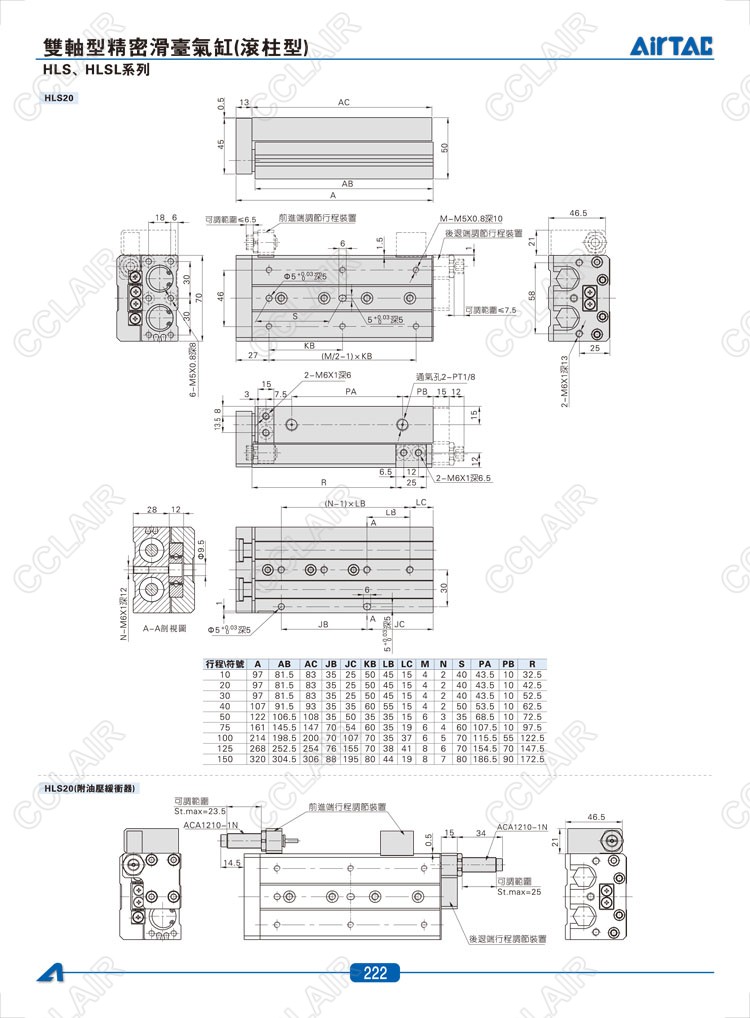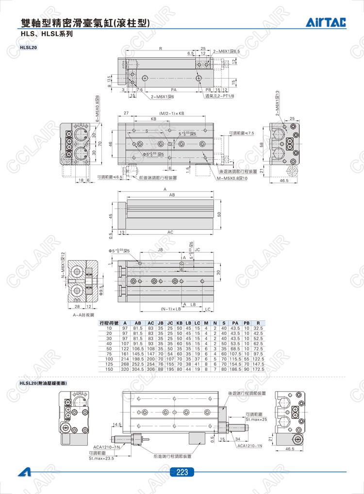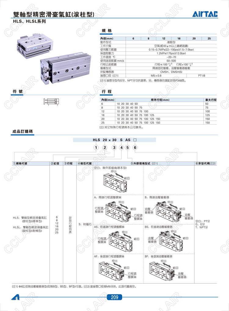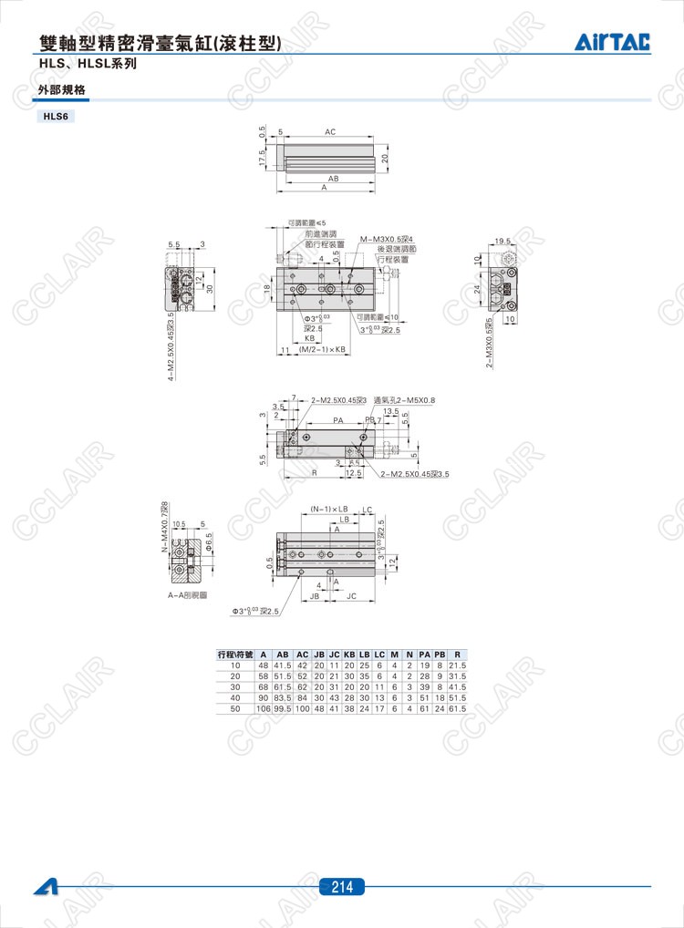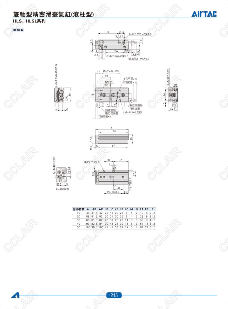 HLS6*10-S,HLS6*20-S,HLS6*30-S,HLSL6*10-S,HLSL6*20-S,HLSL6*30-S,AIRTAC亞德客雙軸型精密滑臺氣缸