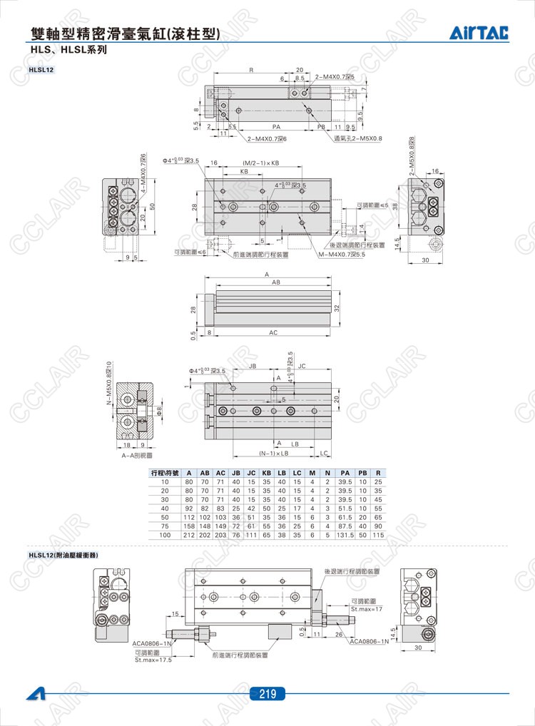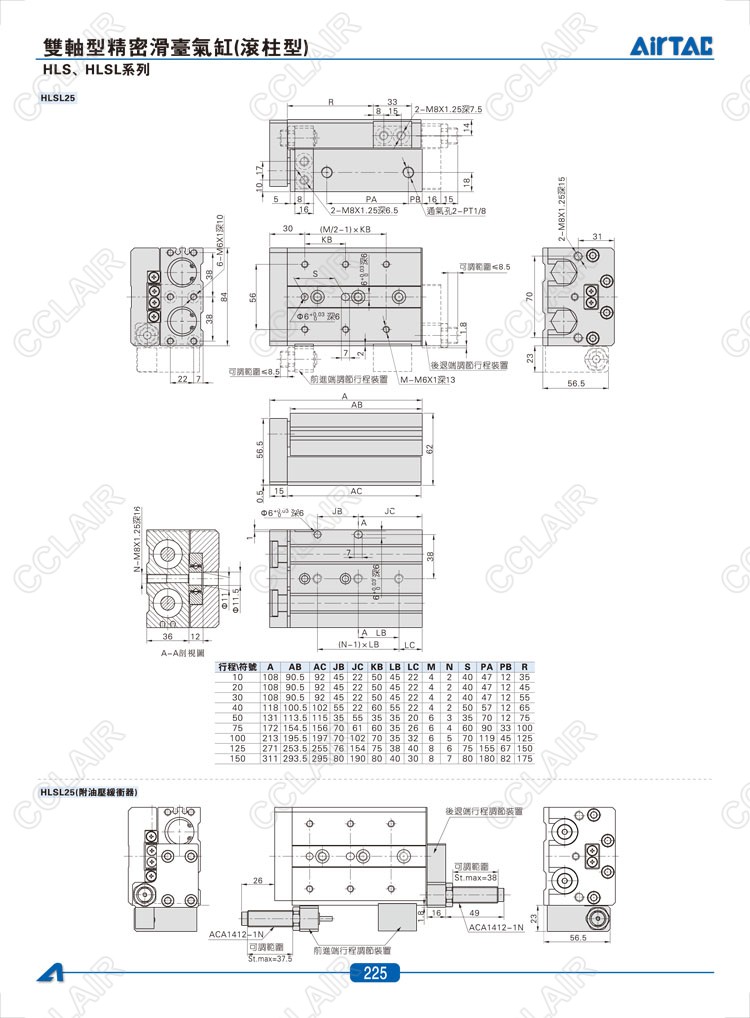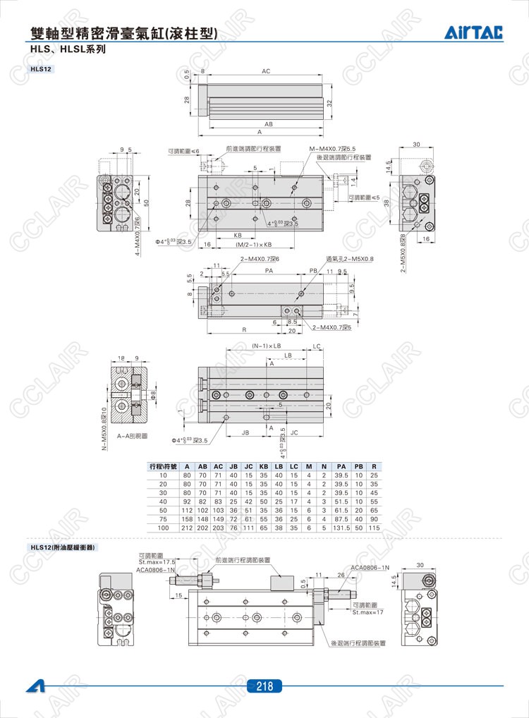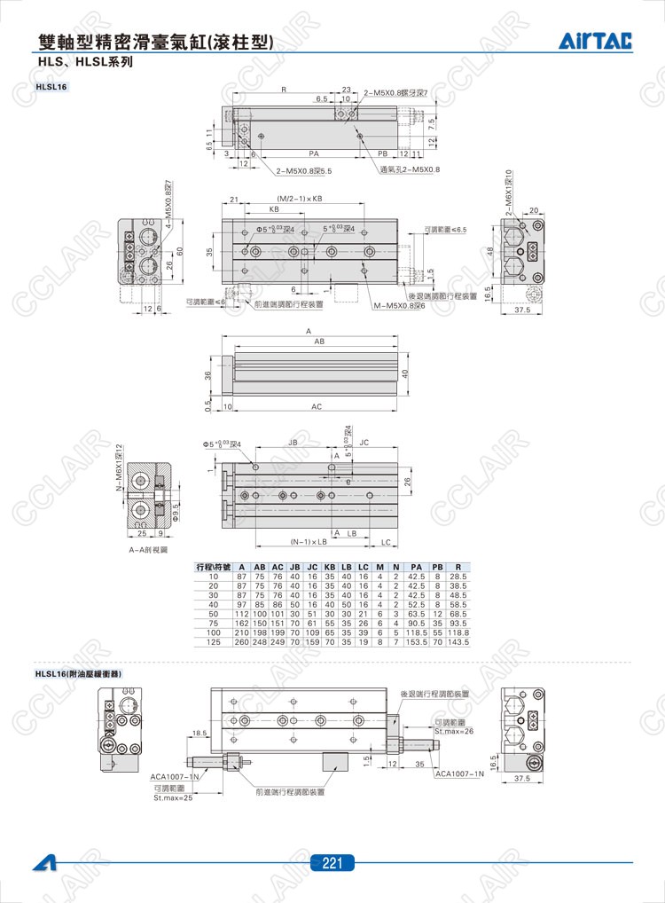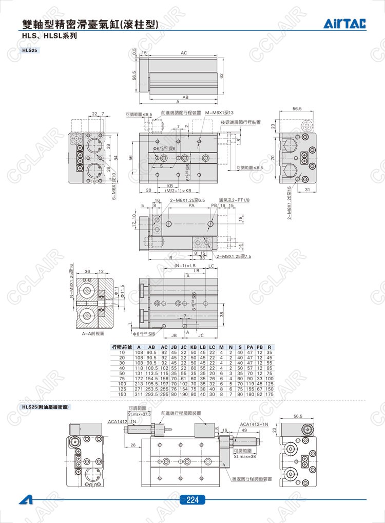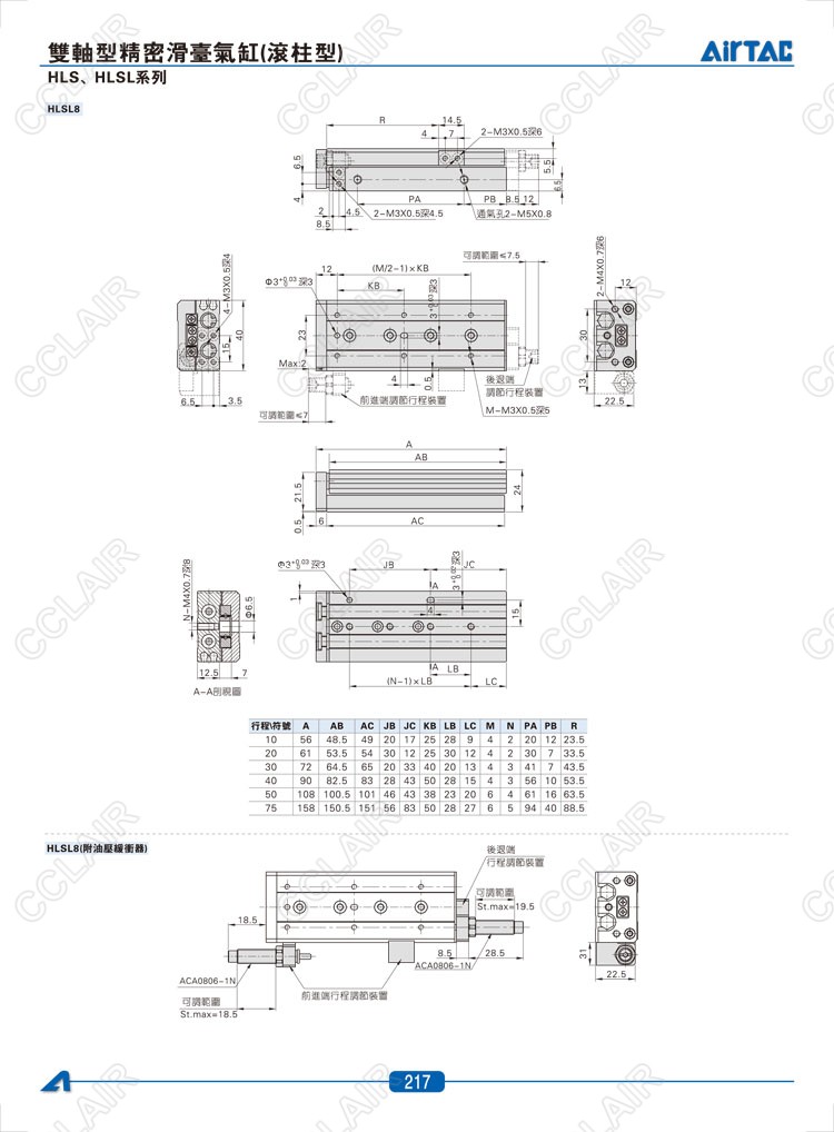 HLS6*10-S,HLS6*20-S,HLS6*30-S,HLSL6*10-S,HLSL6*20-S,HLSL6*30-S,AIRTAC亞德客雙軸型精密滑臺氣缸