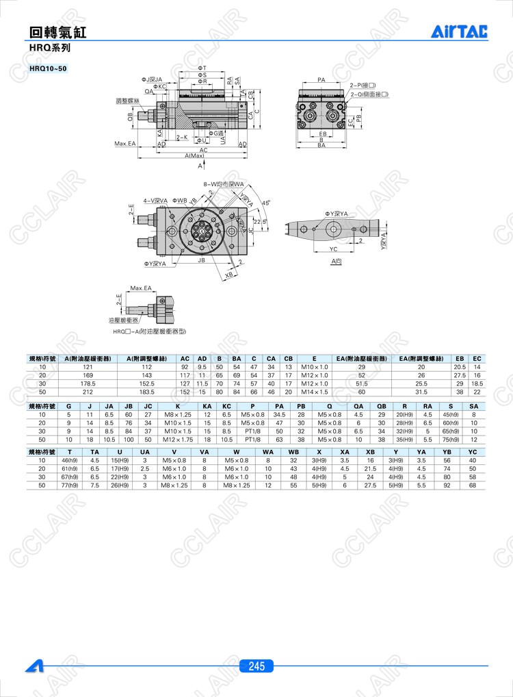 亞德客AIRTAC,HRQ2,HRQ3,HRQ7,HRQ10,HRQ10A,HRQ20,HRQ20A,HRQ30,HRQ30A,回轉(zhuǎn)氣缸