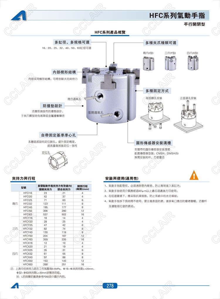 亞德客AIRTAC,HFCI16,HFCI20,HFCY25,HFCY32,HFCX40,HFCX50,氣動手指
