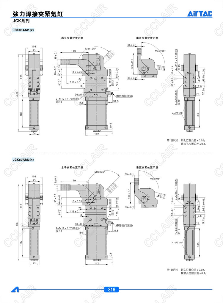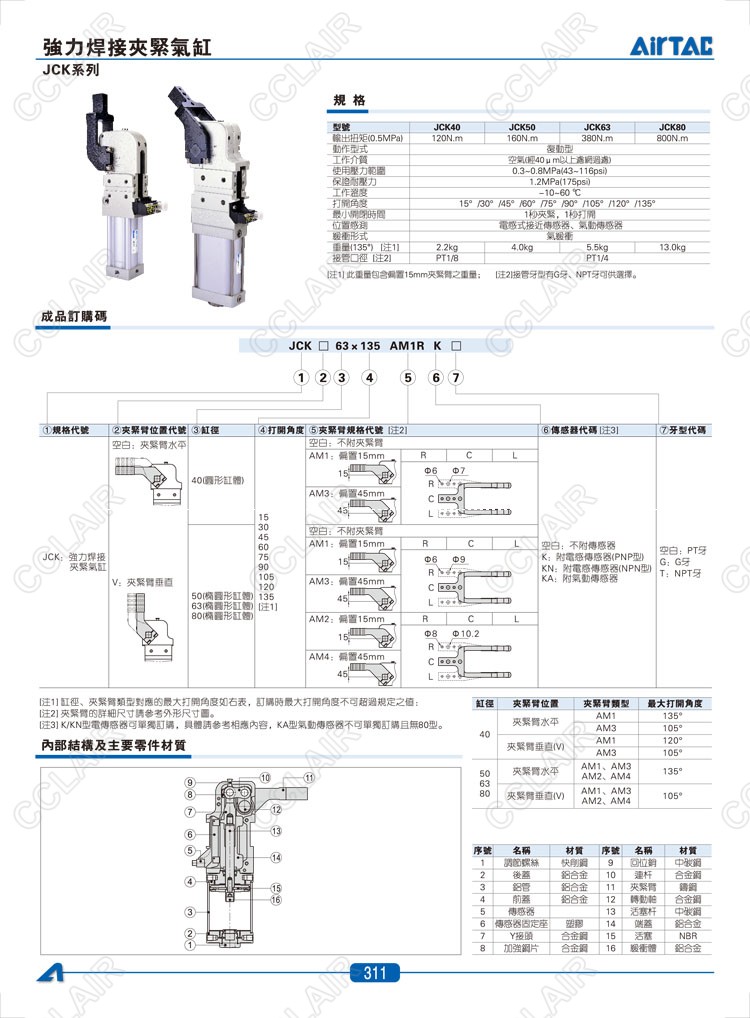 亞德客AIRTAC,JCK40*15AM1R,JCK40*15AM1C,JCKV40*15AM1R,JCKV40*15AM1C,JCKV40*15AM1L,強(qiáng)力焊接夾緊氣缸