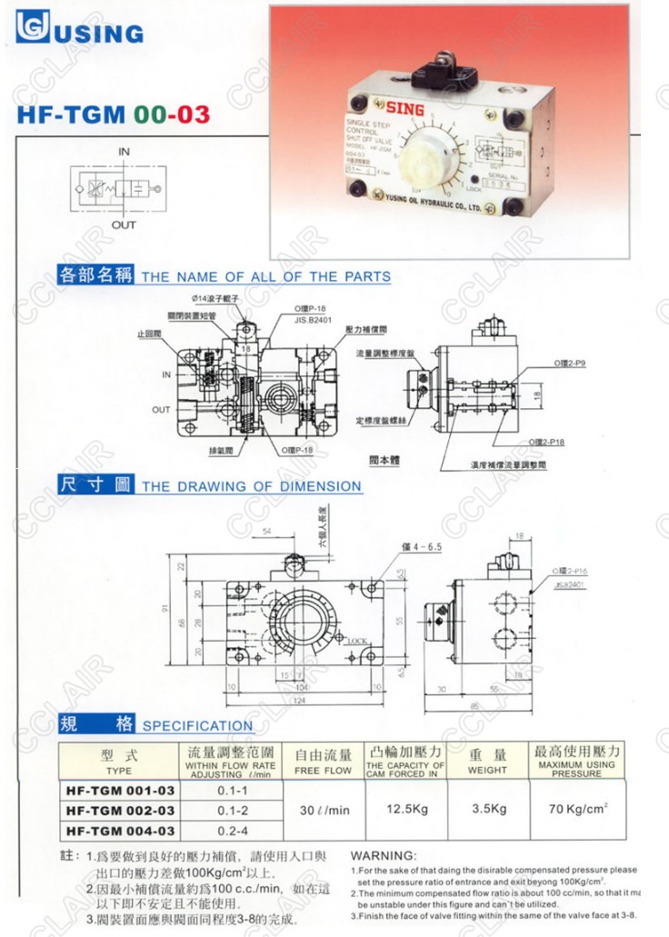 USING峰欣流量控制閥 HF-TGM001-03,HF-TGM002-03,HF-TGM004-03
