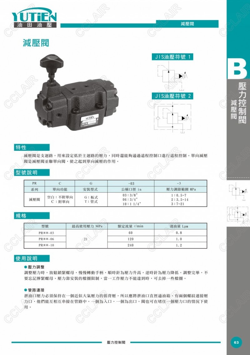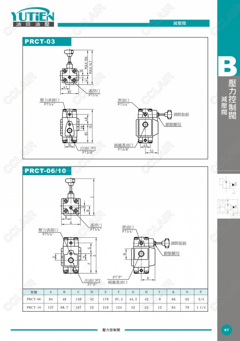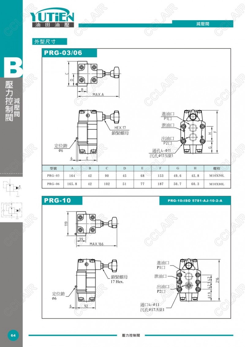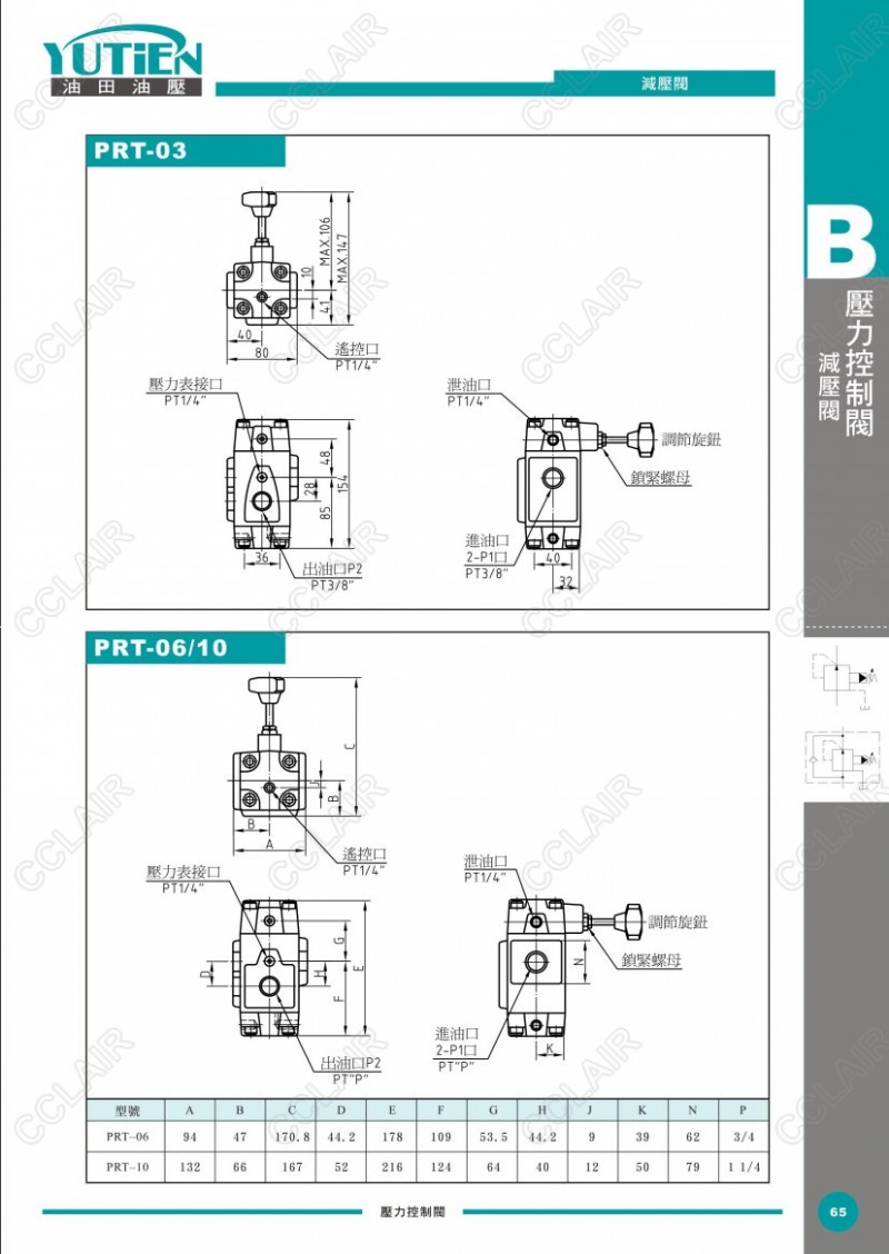 YUTIEN油田減壓閥PRG-03,PRG-06,PRG-10,PRCG-03,PRCG-06,PRCG-10,PRT-03,PRT-06,PRT-10,PRCT-03,PRCT-06