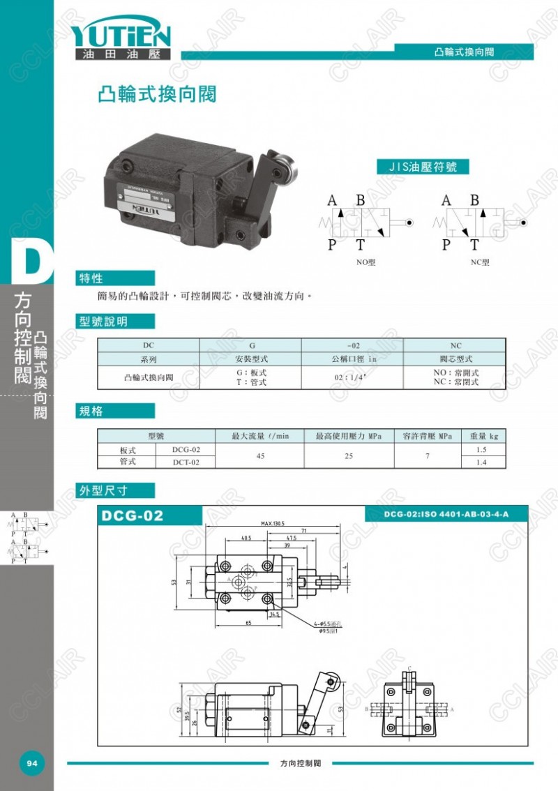 YUTIEN油田 凸輪式換向閥DCG-02-NO,DCG-02-NC,DCT-02-NO,DCT-02-NC