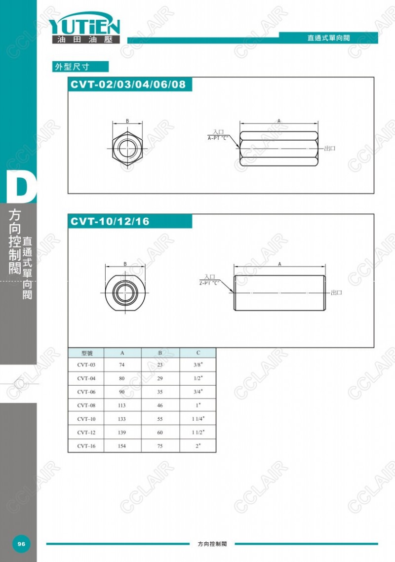 YUTIEN油田直通式單向閥CVT-03,CVT-04,CVT-06,CVT-08,CVT-10,CVT-12,CVT-16
