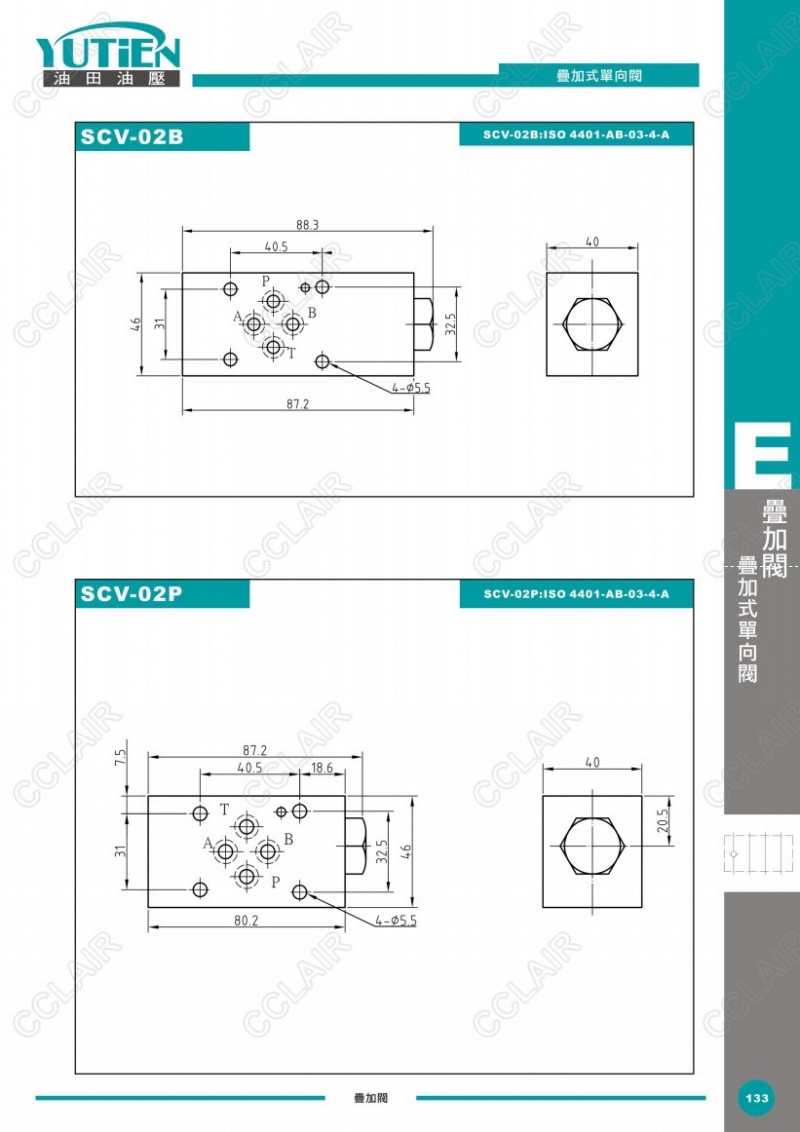 YUTIEN油田疊加式單向閥SCV-02A,SCV-02B,SCV-02P,SCV-02T,SCV-03A,SCV-03B,SCV-03P,SCV-03T