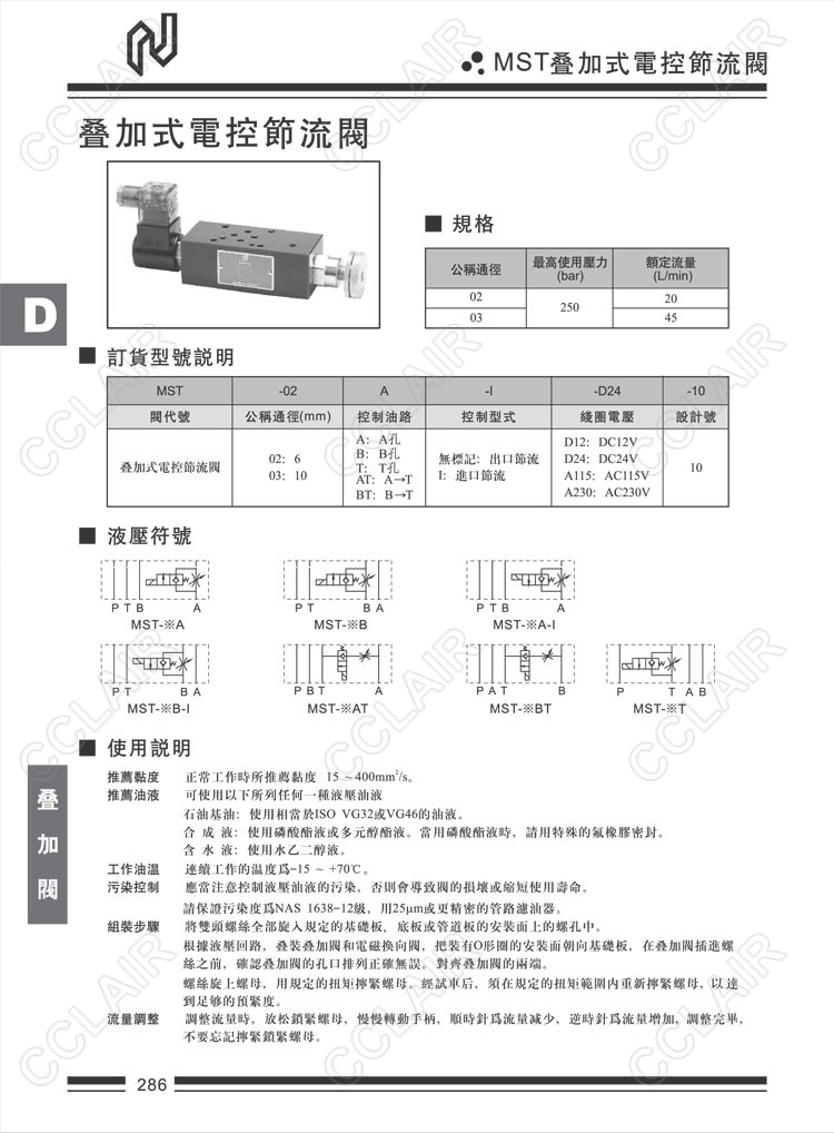 Northman北部精機,疊加式電控節(jié)流閥MST-02-A-D12-10,MST-02-A-D24-10,MST-02-T-A115-10,MST-02-T-A230-10,MST-02-BT-D12-10,MST-02-BT-D24-10,MST-03-T-A115-10,MST-03-T-A230-10,MST-03-BT-I-A115-10,MST-03-BT-I-A230-10