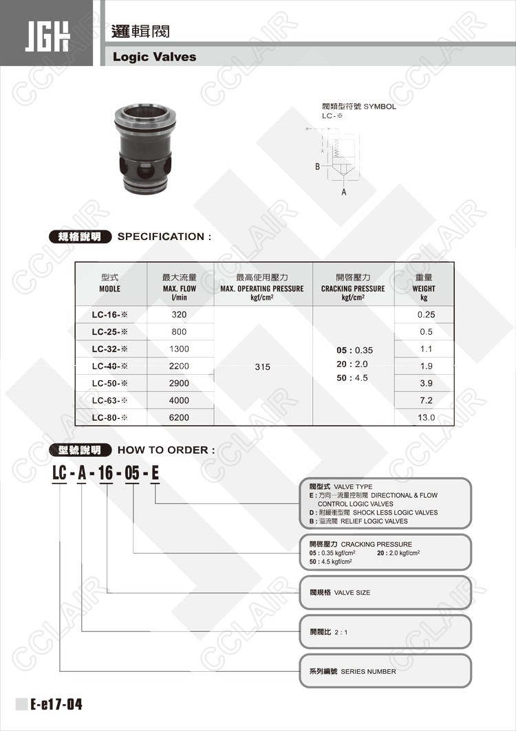 JeouGang臺(tái)灣久岡,邏輯閥LC-A-16-05-E,LC-A-16-05-D,LC-A-25-50-D,LC-A-25-50-B,LC-A-32-05-E,LC-A-32-05-D,LC-A-40-50-D,LC-A-40-50-B,LC-A-50-05-E,LC-A-50-05-D,LC-A-63-50- D,LC-A-63-50-B,LC-A-80-05-E,LC-A-80-05-D,LC-A-80-05-B,LC-A-80-20-E
