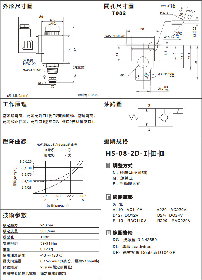HS-08-2D-P-0-DR,HS-08-2D-P-A110-DR,HS-08-2D-P-D12-DR,HS-08-2D-P-R110-DR,HS-08-2D-P-A220-DR,HS-08-2D-P-D24-DR,HS-08-2D-P-R220-DR,兩通常開(kāi)型電磁換向閥