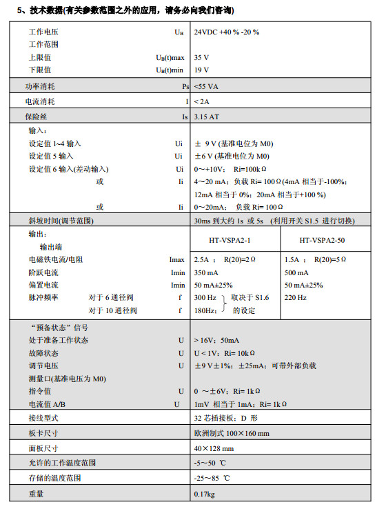 HT-VSPA2-50-15-T5,HT-VSPA2-50-16-T5,HT-VSPA2-50-17-T5,HT-VSPA2-50-18-T5比例放大器