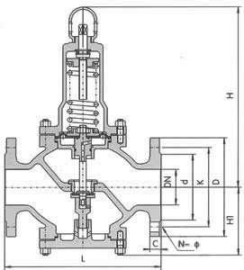 本系列減壓閥屬于先導(dǎo)活塞式減壓閥。由主閥和導(dǎo)閥兩部分組成。主閥主要由閥座、主閥盤、活塞、缸套、彈簧等零件組成。導(dǎo)閥主要由閥座、閥瓣、膜片、彈簧、調(diào)節(jié)彈簧等零件組成。通過調(diào)節(jié)調(diào)節(jié)彈簧壓力設(shè)定出口壓力,利用膜片傳感出口壓力變化,通過導(dǎo)閥啟閉驅(qū)動活塞調(diào)節(jié)主閥節(jié)流部位過流面積的大小,實現(xiàn)減壓穩(wěn)壓功能。