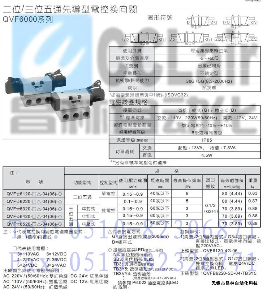 QVF6320-4D-04(06),QVF6320-5G-04(06),QVF6320-5D-04(06),二位/三位五通電控換向閥
