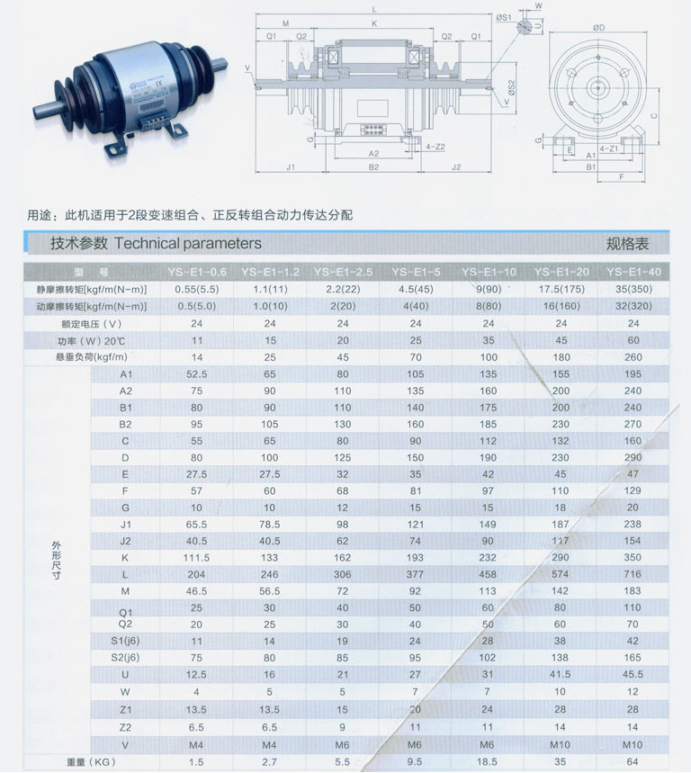 YS-E1型電磁雙離合組合-皮帶輪型用途:此機適用于2段變速組合、正反轉組合動力傳達分配。