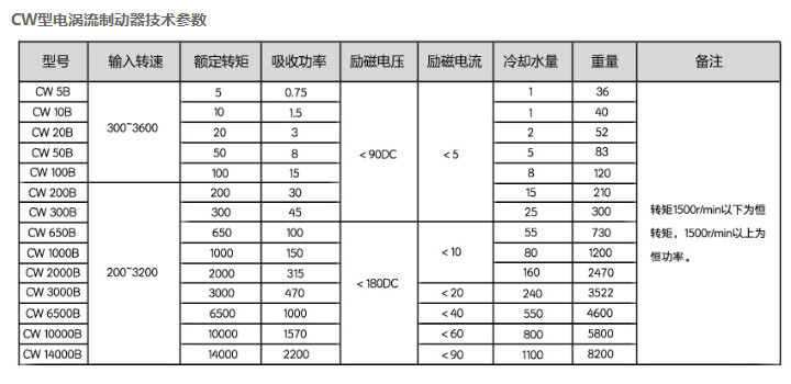 CW5B,CW10B,CW20B,CW50B,CW100B,CW200B,CW300B,CW650B,CW1000B,CW2000B,CW3000B,CW6500B,CW10000B,CW14000B電渦流制動器