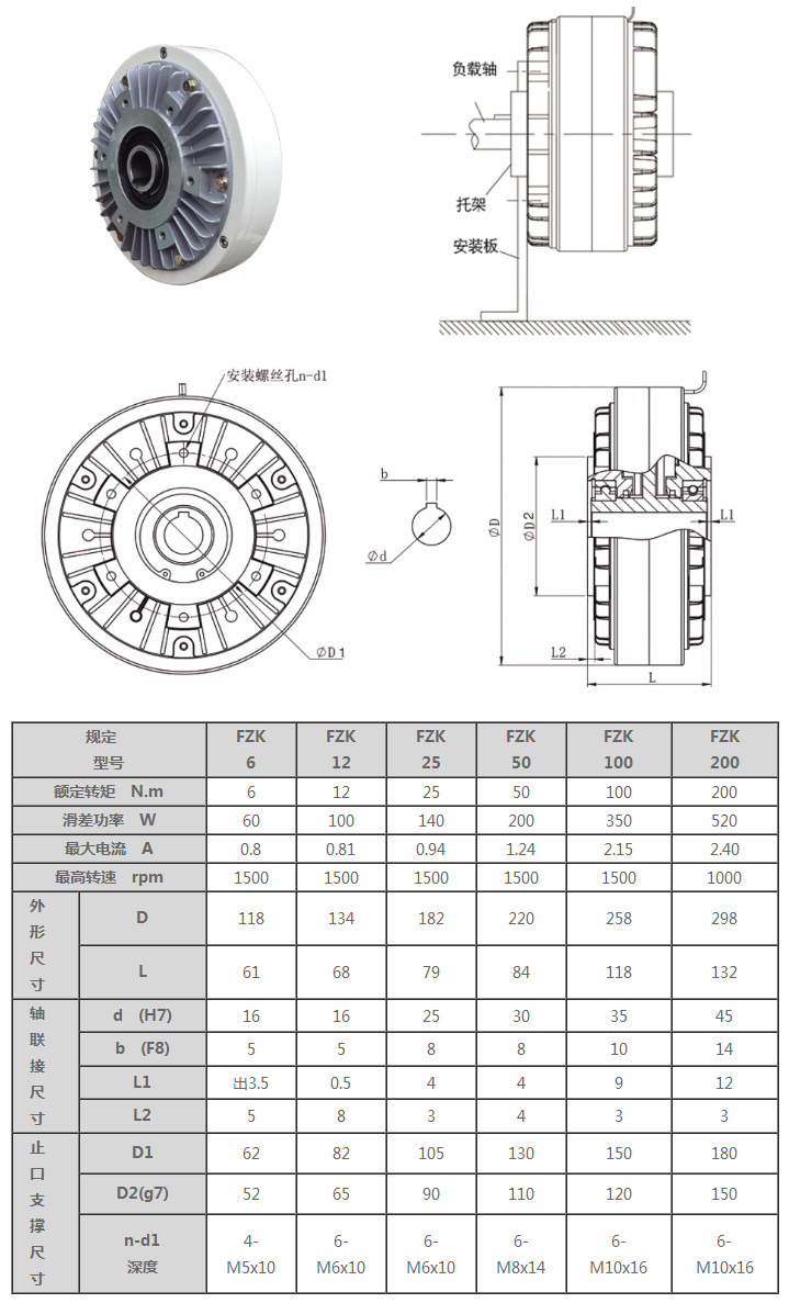 FZK6,FZK12,FZK25,FZK50,FZK100,FZK200,空心軸磁粉制動(dòng)器