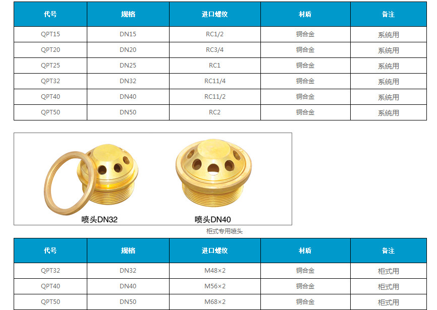 QPT15,QPT20,QPT25,QPT32,QPT40,QPT50,網(wǎng)管噴頭