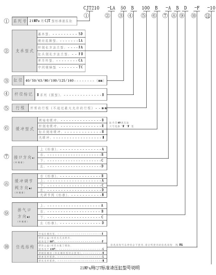 CJT210-SD40,CJT210-SD50,CJT210-SD63,CJT210-SD80,21MPa用CJT標(biāo)準(zhǔn)液壓缸
