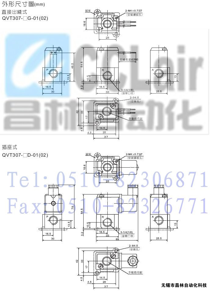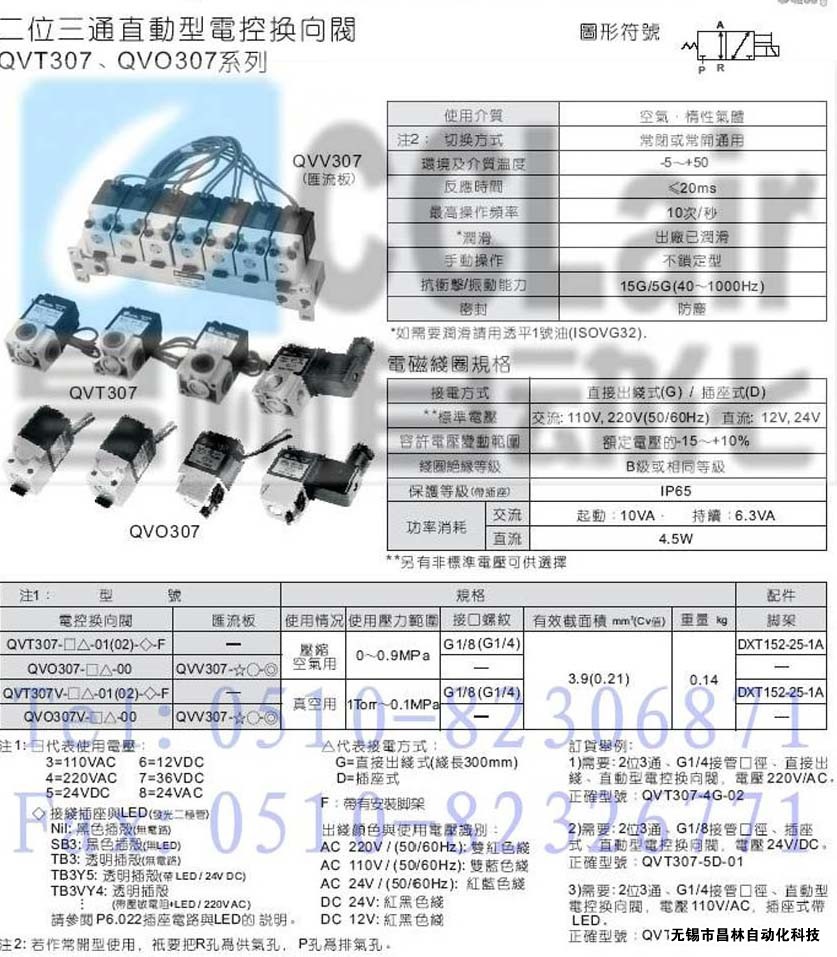 QVO307-5G-00,QVO307-5D-00,QVO307-6G-01(02),QVO307-6D-00,二位三通直動(dòng)型電控?fù)Q向閥