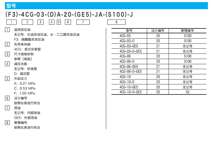 型號(hào): 4CG-03-A-20-JA-S100-J,4CG-03-C-20-JA-S100-J,4CG-03-F-20-JA-S100-J,4CG-03-DA-20-JA-S100-J,4CG-03-DC-2