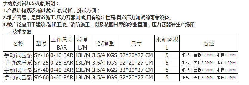 SY-16,SY-25,SY-40,SY-60,手動測壓泵25kg至60kg全銅泵體銅活塞持久更耐用