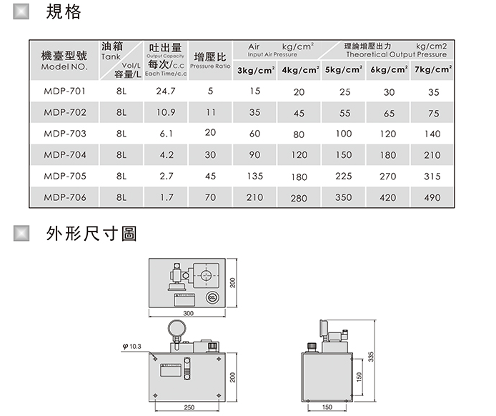 氣動式油壓泵MDP-701,MDP-702,MDP-703,MDP-704,MDP-705,MDP-706