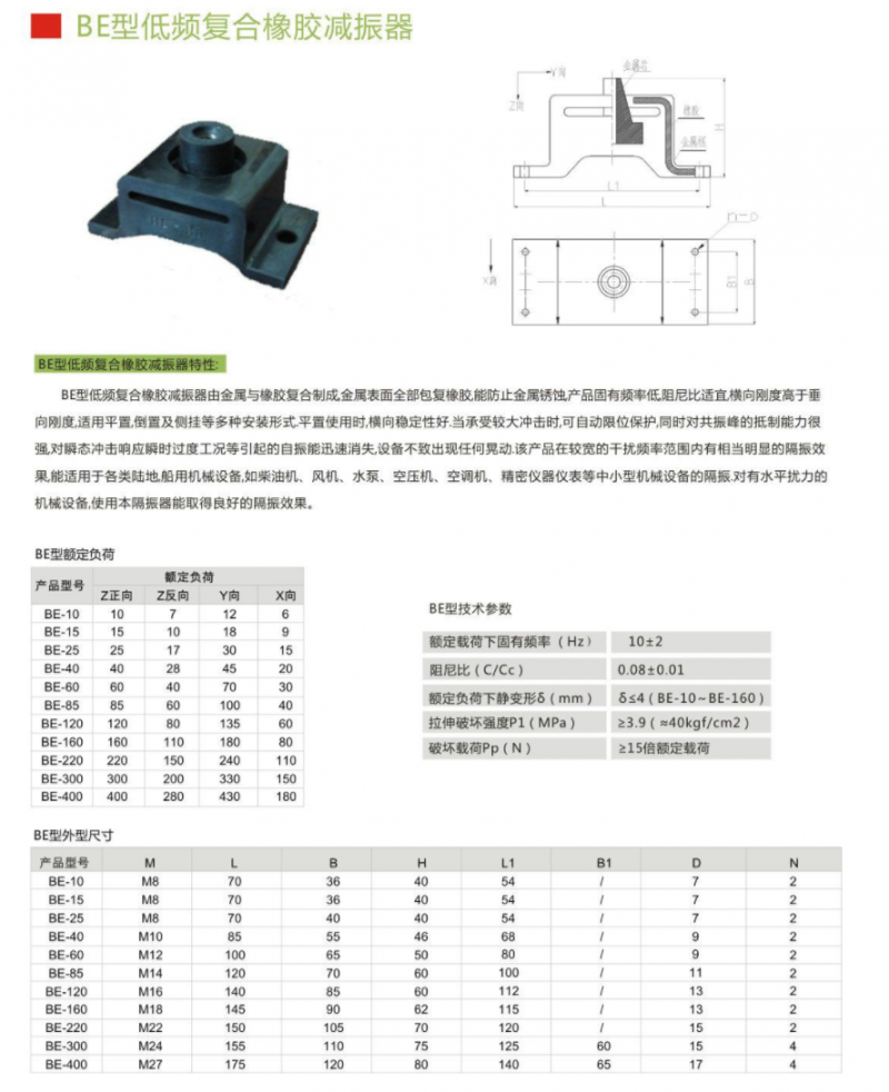 低頻復(fù)合橡膠減振器 BE-10,BE-15,BE-25,BE-40,BE-60,BE-85,BE-120,BE-160,BE-220,BE-300,BE-400