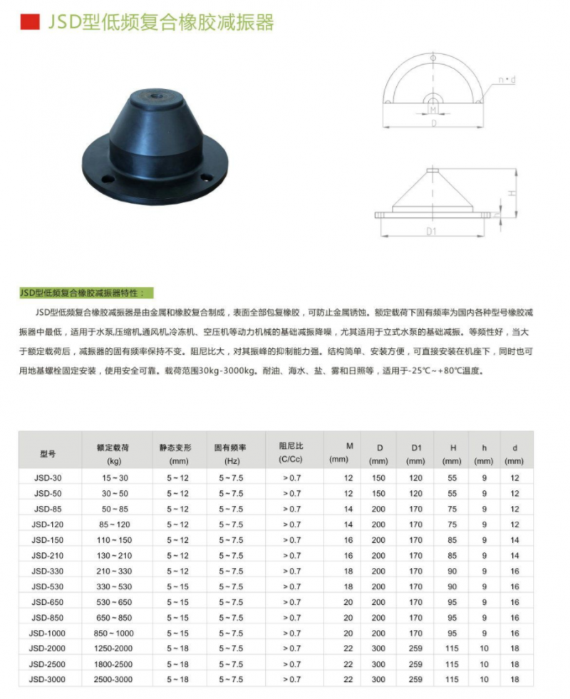低頻復(fù)合橡膠減振器 JSD-30,JSD-50,JSD-85,JSD-120,JSD-150,JSD-210,JSD-330,JSD-530,JSD-650,JSD-850,JSD-1000 JSD-2000,JSD-2500,JSD-3000