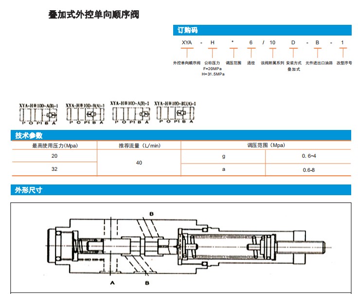 XYA-Ha6/10D-A(B)-1,XYA-Ha6/10D-B(A)-1,疊加式外控單向順序閥