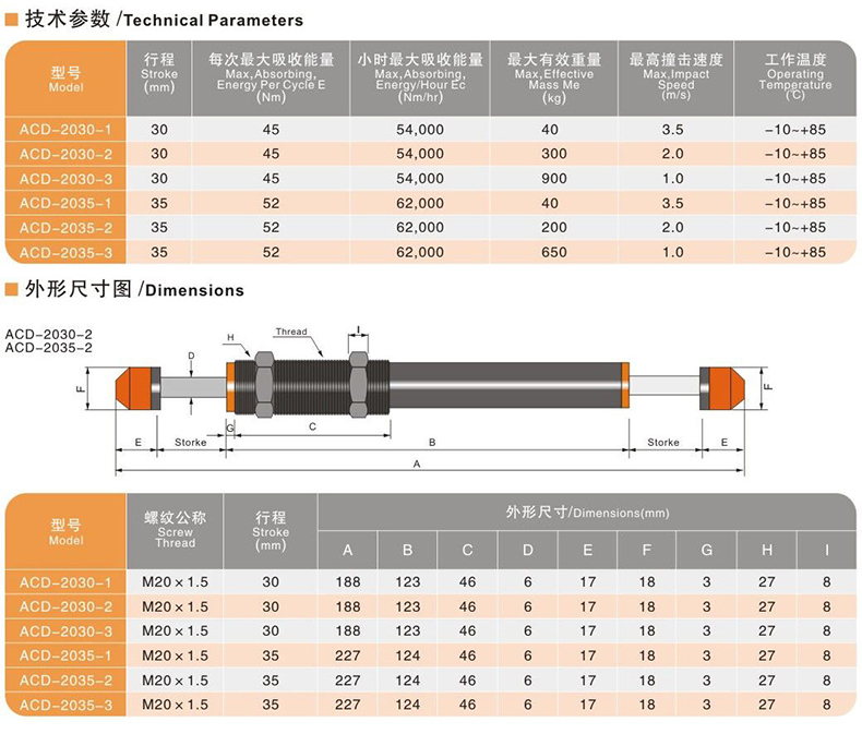 雙向油壓緩沖器ACD2030-2,ACD2030-2,ACD2035-2,ACD2035-2,ACD2050-2,ACD2050-2,ACD2050-W