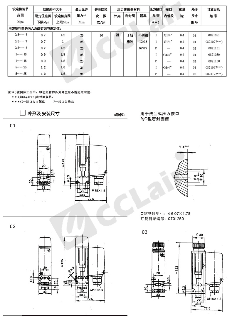 0815108,0813508,0815208,0813608,壓力控制器 D501/7DZ切換差不可調(diào)