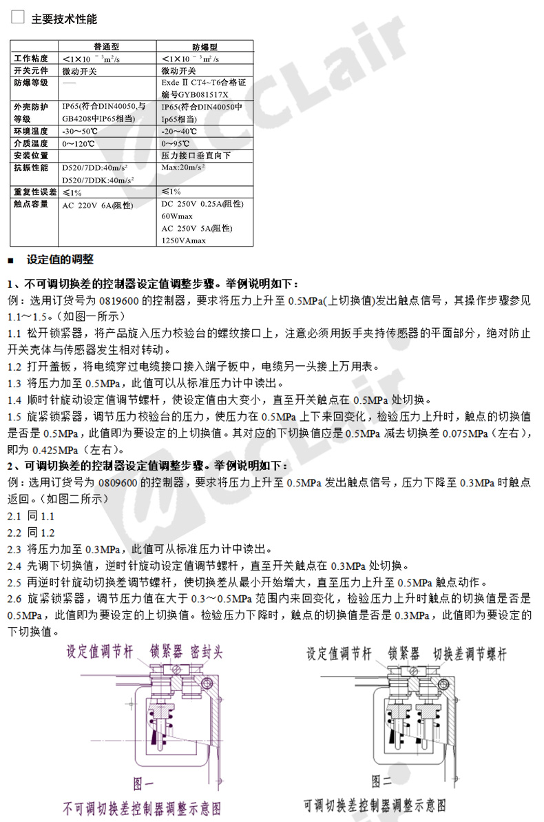 型號: 壓差開關(guān)普通 D520/7DD切換差不可調(diào)