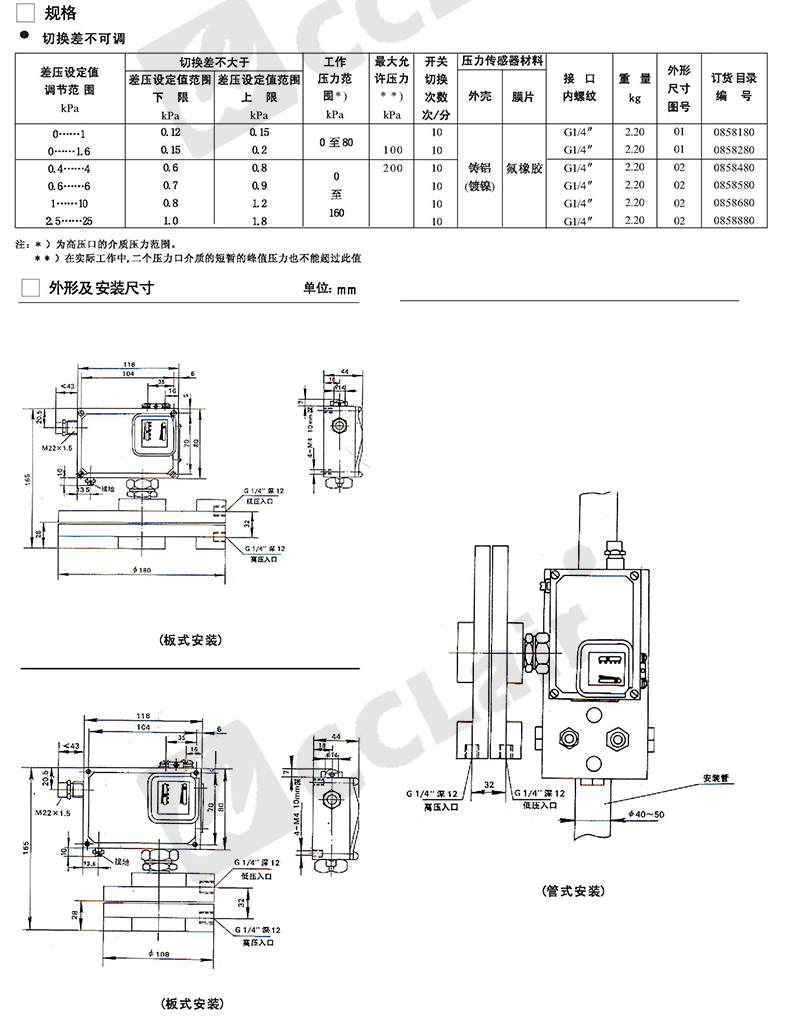 0819100,0819500,0819200,0819600,壓差開關(guān)普通 D520/7DD切換差不可調(diào) 0819300,0819700,0819400,