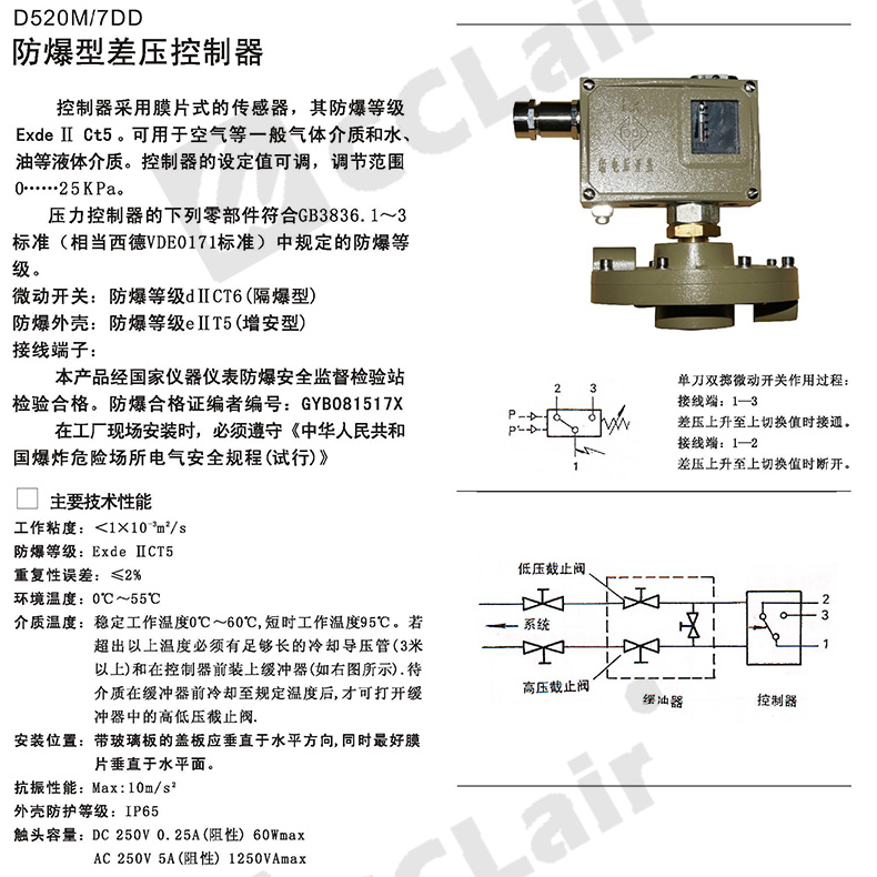 0849180,0849580,0849280,0849680,0849380,0849780,0849480,壓差開關(guān) 防爆 D520/7DD切換差可調(diào)