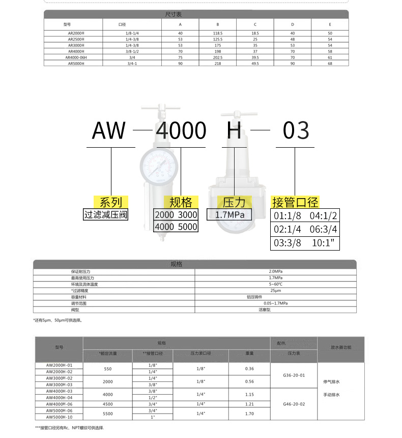 型號: AC2000H-01M,AC2000H-02M,AC3000H-02M,AC3000H-03M,AC4000H-04M,AC4000H-06M,AC5000H-06M,AC5000H-10M,AC20