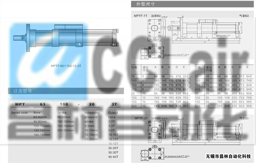 MPTF160-100-10-1T,MPTF160-100-10-3T,MPTF160-100-10-5T,MPTF160-100-10-10T,氣液增壓缸